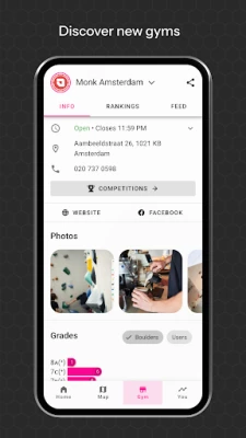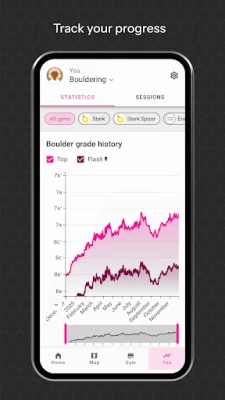 • STAY UPDATED ON NEW CLIMBS: Stay informed about new routes in your gym, or upcomming resets.